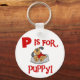 Red text reads "P is for Puppy" on these cute puppy design T-shirts, mugs, tote bags, cards, and more, great for anyone of any age who loves dogs!