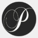 P monogram with a black background, white script initial and silver border. Perfect sticker for your wedding envelopes, gift bags, or other decor for your elegant wedding.