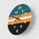 This stylish teal, orange, black, and white clock will definitely stand out . The large bold numbers make telling time very easy.