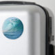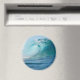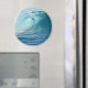 Round photo magnet of a big surfing wave breaking in the Pacific Ocean.