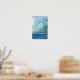 Vertical poster print of a pacific big surfing wave breaking on a reef with a lot of spray showing freshness and energy.