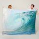 Fleece blanket with a big blue surfing wave breaking in the Pacific Ocean.