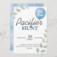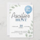 Pacifier Hunt Baby Shower Game Balloon Eucalyptus Invitation | Greenery & Blue Hidden Pacifier Invite
