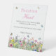 Summery and bohemian, this pacifier hunt baby shower game pedestal sign can be customised for your baby shower. The design features a brightly coloured field of delicate wildflowers with butterflies, bumble bees and ladybugs.