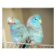 Pacific Blue Parrotlets Love Bird companions relaxing together. Fun bird portrait. Copyright Rick Short, All Rights Reserved.