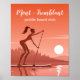 This poster features an illustration of the beautiful girl in bikini on the paddle board and personnalisable text in the mix of calligraphic and block fonts. Young woman crosses the lake at the sunsetting time and sun reflection gleams on the water surface. The poster is designed in warm colors: orange and reddish brown. Do not hesitate to contact me via Zazzle, please, if you need help in personnalisation of this poster.