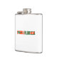 Well made flask, a little better than I had expected. Flask came in clear plastic box which gave it a nice presentation when I took it out of the zazzle packaging. Image is not printed on flask but on sticker. Don't know how this will hold up I haven't used it yet. This would make a Great gift! I plan to purchase more for friends! Cheers. I thought a little brighter than computer. Very crisp, writing wasn't