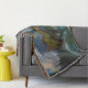 A quality printed throw has its advantages. This is a much finer weave throw than its loopier cousins, and though lighter, it is worth the investment for custom room accessorizing. The back is much prettier than the typical brown, and the fringe on the long sides very vivid, the selvage nicely done. Before photographing, I washed the throw in cold water, delicate, with a thicker woven throw the same size. On tumble dry low, this throw was dry in half the time as the other. This is a very practical quality if you use throws for furniture covers or to wrap up in frequently. The sleekness of the fabric makes it a great layer for accenting or protecting without the feeling of sitting on too much stuff. Perfect for napping or when you feel a light chill coming on. The color printing is beautiful and on this fabric, matched the design and color of my Photoshop image. This is an advantage for blending room fabrics and colors. The fringe on the short sides prints the colors from the design image and therefore varies from the side fringe. I streaked a white fractal line through the plaid pattern to give the illusion of weaving. This printed as crisp as an illusory thread, and put some white in the short side fringe, showing another advantage of print vs loomed- for artistic purposes, line lines, detail, and color integrity can be planned and preserved. My loomed throws have color limitations and more of a needlepoint texture. Print throws reproduce an exact image. The throw felt a little stiff straight out of the package, but this went away in the first delicate wash. Of course I searched the wash water for ink or bleeding and there was none.