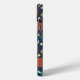 This phone case is ready to be customised with your choice of initial and features a pattern of padel tennis rackets and balls in shades of terra cotta, gold, teal, yellow and cream against a navy blue background.