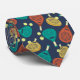 Even when you can't be out on the padel court, show off your passion with this patterned neck tie. It features illustrations of padel tennis rackets and balls in terra cotta, teal, gold, yellow and cream against a navy blue background.