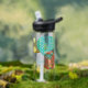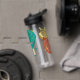 This water bottle is perfect for staying hydrated when you're out on the padel court. It's illustrated with padel tennis rackets and balls in teal, terra cotta, gold and yellow and is ready to be personalised with a name on the front in coordinating teal lettering.