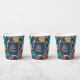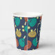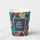 Whether it's a party at the padel court or a celebration honouring your favourite padel player take your party game to the next level with personalised party supplies. These paper cups are ready to be customised with your own greeting and name. They feature illustrations of padel tennis rackets and balls in teal, terra cotta, gold, yellow and cream against a navy blue background.