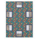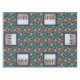 This tablecloth is ready to be customised with up to six of your photos. Your pictures are accented with illustrations of padel rackets and tennis balls in gold, terra cotta, teal, yellow and cream set against a navy blue background.