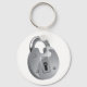 A padlock is a good way to keep something secure and this design is of a really secure looking padlock. This metal grey padlock is operated by a key and has a strong looking looking mechanism. This padlock design looks great on this keychain. Perfect for yourself or as a gift