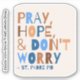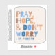 St. Padre Pio left us this beautiful advice: "Pray, hope, and don't worry." This simple message of calm is more relevant now than it ever was! We have set Padre Pio's words in whimsical modern typography in calming colours that suggest peace and the sea. This sticker would be fun to stick anywhere where people might see it and be affected by it. Pray, hope, and don't worry!