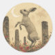 This round sticker features a dancing hare leaping inside a Celtic stone circle, with a crescent moon in the background. I designed this with inspiration from nature festivals, folklore, and tarot card symbolism, making it a meaningful choice for seasonal celebrations.