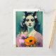 Pagan Woman Painting Pink Orange Flowers Postcard