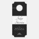 Hang this "judges interview" door hanger on the interview room. Shown here in black with coordinating white and grey colouring on front and back with a small silver crown. Personalised line for your pageant name, your title or other special moto or statement. Customise this item or buy as shown.
