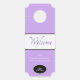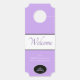Greet your guests with this door hanger that takes the place of a welcome mat inside the home, apartment or hotel room. Shown here in a spritely shade of orchid purple with coordinating white and black colourings. "Welcome" text on front and back with a small oval and silver-grey coloured tiara-crown inside, use filter option for silver crown if you desire. Personalised line for your pageant name, your title or other special moto or statement. Customise this item or buy as shown.