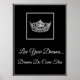 Poster shown in black and white with a photo print of a pageant queens crown in silver tone with text: Live your dreams... Dreams do come true. Customise this item or buy as is. Choose a different size poster or even change colours.