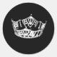 Round sticker shown in black with a litho print of a pageant queens crown. Customise this item or buy as is.