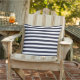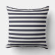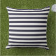 This large outdoor throw pillow is shown in a cute navy blue and white stripes print. A Miss America type crown in silver colour in upper corner over navy blue background on back. Add some text if you prefer.