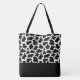 This cute stylish large tote bag is shown in a spotted cow print with a colour block style with a pageant crown and custom text. Text shown reads "