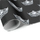 Wrapping paper shown with a black coloured background with a pageant queen's silver tone crystal crown print.