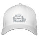 Shown in white with a two-tone embroidered text [miss is in a slightly lighter colour] in blue colours. This cap has front text shown with name of pageant, back text is shown with the year and the side text is shown with city and state. Customise this item and remember to choose your hat colour.