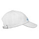 Shown in white with a embroidered stitch turquoise blue colour crown and text. This cap has front text only shown with your title. Adjustable back.
