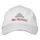 Shown in white with a embroidered stitch boysenberry [wine] text and silver colour crown. This cap has front text only shown with your title. Adjustable back.