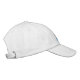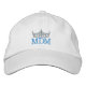 Shown in White cap with the embroidered text in blue and crown in silver Isacord. This cap has front text only. Adjustable back.