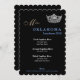 Created style for a fun fresh setting for your pageant or luncheon event. Shown in classic black on front and back on fine quality paper, this program/menu card has a silvertone Miss America style type crown in the upper corner. Text in centre. Fancy scalloped edging. We've created the template for you, simply change the information to your own at the right side of your screen in the selection menu. Customise further if you desire by changing the paper selection,text or text colours, text styles or upload your own image. Lovely choice for receptions, retirement parties, pageant parties, balls, luncheons, events, weddings or veterans events.