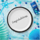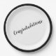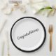 Party paper plate shown in a black and white combo colour scheme with the word "congratulations" in centre.
