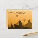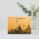 This postcard features pagodas and balloons at sunset in Old Bagan, Myanmar (formerly Burma).