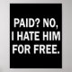 Paid No I Hate Him For - Funny Sarcasm Poster