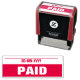This plain rubber stamp design features the messages "PAID" and a line where a payment date can be written. It could be used to mark an invoice or bill as having been paid in full.