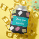 Multi-coloured paint strokes create a striking effect against a black background. Customise with your own text.