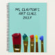 Spiral bound year long planner for those who teach art and painting. Brushes with paint decorate the blue cover with black printed font at the top for a title, teacher's name and year. This planner is useful for any artist who needs to keep organised.