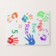 Paint Handprints Birthday with Personalised Name Jigsaw Puzzle