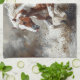 A dynamic painting of a paint horse running through water, capturing the powerful motion and natural beauty of this spirited animal in a wild setting.