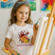 Here is a cute "Artist in Training" tee for girls. The pink background is pretty, and the paint set is a nice touch. She can wear this shirt for crafts and beyond. Personalise this tee with your own words.