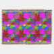 A quality printed throw has its advantages. This is a much finer weave throw than its loopier cousins, and though lighter, it is worth the investment for custom room accessorizing. The back is much prettier than the typical brown, and the fringe on the long sides very vivid, the selvage nicely done. Before photographing, I washed the throw in cold water, delicate, with a thicker woven throw the same size. On tumble dry low, this throw was dry in half the time as the other. This is a very practical quality if you use throws for furniture covers or to wrap up in frequently. The sleekness of the fabric makes it a great layer for accenting or protecting without the feeling of sitting on too much stuff. Perfect for napping or when you feel a light chill coming on. The color printing is beautiful and on this fabric, matched the design and color of my Photoshop image. This is an advantage for blending room fabrics and colors. The fringe on the short sides prints the colors from the design image and therefore varies from the side fringe. I streaked a white fractal line through the plaid pattern to give the illusion of weaving. This printed as crisp as an illusory thread, and put some white in the short side fringe, showing another advantage of print vs loomed- for artistic purposes, line lines, detail, and color integrity can be planned and preserved. My loomed throws have color limitations and more of a needlepoint texture. Print throws reproduce an exact image. The throw felt a little stiff straight out of the package, but this went away in the first delicate wash. Of course I searched the wash water for ink or bleeding and there was none.