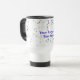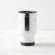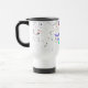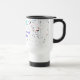 Travel mug with an abstract art background of paint splashes and multi-coloured spots. Ready to customise with your own text and different background colours. ©Annabel Potter
