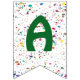Celebrate and decorate your space with this fun pant splatter bunting flags. Each flag has the paint splatter design on them. Put them all together and spell out HAPPY BIRTHDAY. I have chosen green to display but feel free to change the colour of the letters to match your needs.