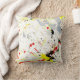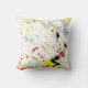 * Red, black, yellow and grey colours of paint splatter, drips and drops cover this pillow