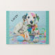 Paint splattered Dalmatian puppy puzzle. Personalised name of puppy or child.