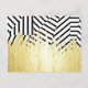 Paint Strokes in Faux Gold on Black & White Stripe Postcard