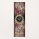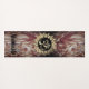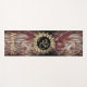 This artsy, abstract painting shades of red, rust,and oranges splattered through out the mat with a decorative gold lotus flower with a gold OM symbol in the middle as the centerpiece. Artsy cool vibe with vibrant energy to get you going with your yoga practice. Can be personalised on the bottom with name, logo or text or keep as is with the words Namaste.