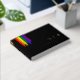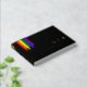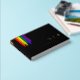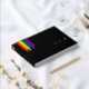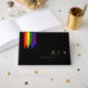 Black and rainbow LGBTQ wedding guest book with rainbow pride flag drawn with messy strokes and gold foil custom text against a black background. Gay wedding guest book in black with rainbow brush strokes and custom gold foil text. Lesbian wedding guestbook with gold text and rainbow coloured brushstrokes. Mr & Mr in gold foil that can easily be changed to Mrs & Mrs for a lesbian wedding.